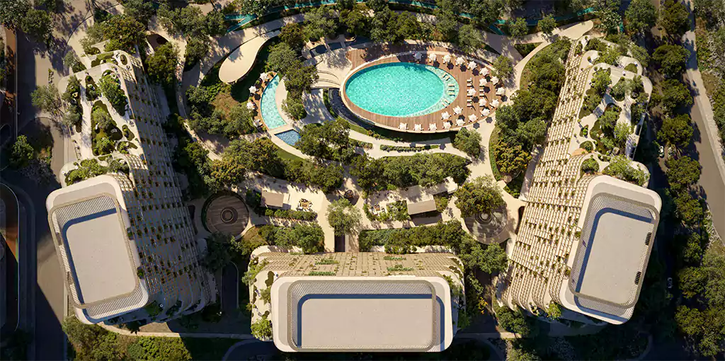 Three towers with sculptural and fluid architectural design